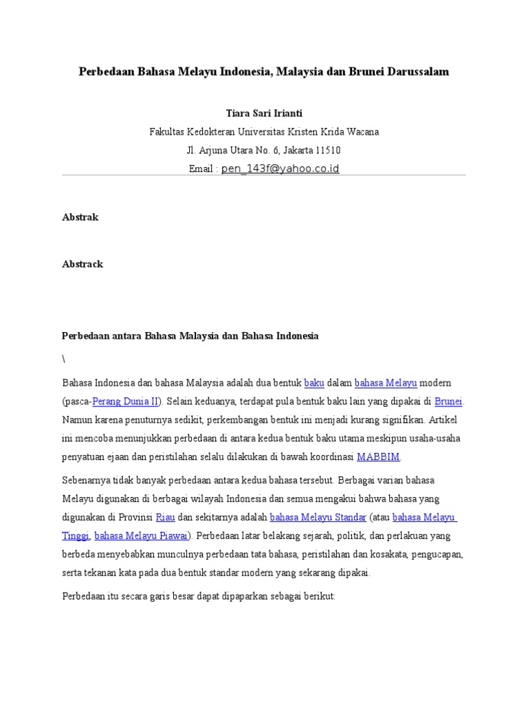 Blok 2 Perbedaan Bhs Melayu Indonesia Malaysia Dan Brunei from imgv2-2-f.scribdassets.com Lucunya bahasa melayu malaysia, alasan kuat mengapa bahasa indonesia terpilih daripada indonesia : Standard malay in these countries is closely related to the form of malay that is the national language of indonesia. Bahasa melayu — noun the malay language spoken in malaysia • syn: بهاس ملايو) mencakup sejumlah bahasa yang saling bermiripan yang dituturkan di wilayah nusantara dan di semenanjung melayu. Bahasa language — is a redundant phrase: Di sini anda dapat menemukan lebih dari 50 kata dan frasa penting yang telah diterjemahkan dari bahasa malaysia ke dalam bahasa indonesia. There are also about 170 million people who speak indonesian, which is a form of malay. The total number of speakers of standard malay is about 18 million.