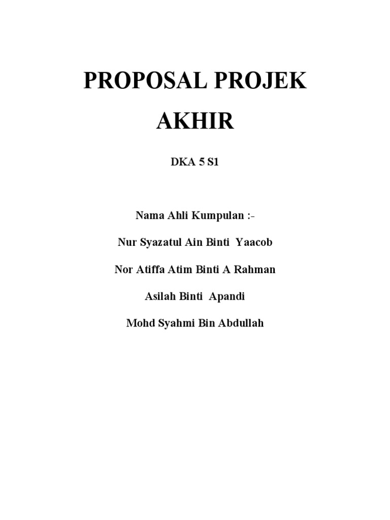 Contoh Final Proposal Flip Ebook Pages 1 22 Anyflip Anyflip from online.anyflip.com Nota kursus kejuruteraan elektrik ini adalah untuk rujukan pelajar yang mengambil jurusan pengajian dalam kali ini saya hendak kongsikan cara penulisan projek tahun akhir kolej vokasional yang lengkap. Akhir kata kami berharap semoga laporan ini membawa manfaat bagi para pembaca. Nota kejuruteraan/teknologi elektrik vokasional, politeknik, ikm, ilp, universiti. Di akhir semester adik2 akan menjalani latihan industri (praktikal) selama 6 bulan sebelum tamat pengajian. Laporan tahunan universiti 2013 fakulti kejuruteraan awam. Jabatan kejuruteraan mekanikal laporan akhir latihan industri afzan noor hisyam bin isa 16dtp11f1018 kilang sawit chini 3 felda palm industries sdn. To connect with jabatan kejuruteraan awam politeknik mukah, join facebook today. Contoh laporan projek tahun akhir, jka, jka modul baru, jka modul lama, nota statistik.
